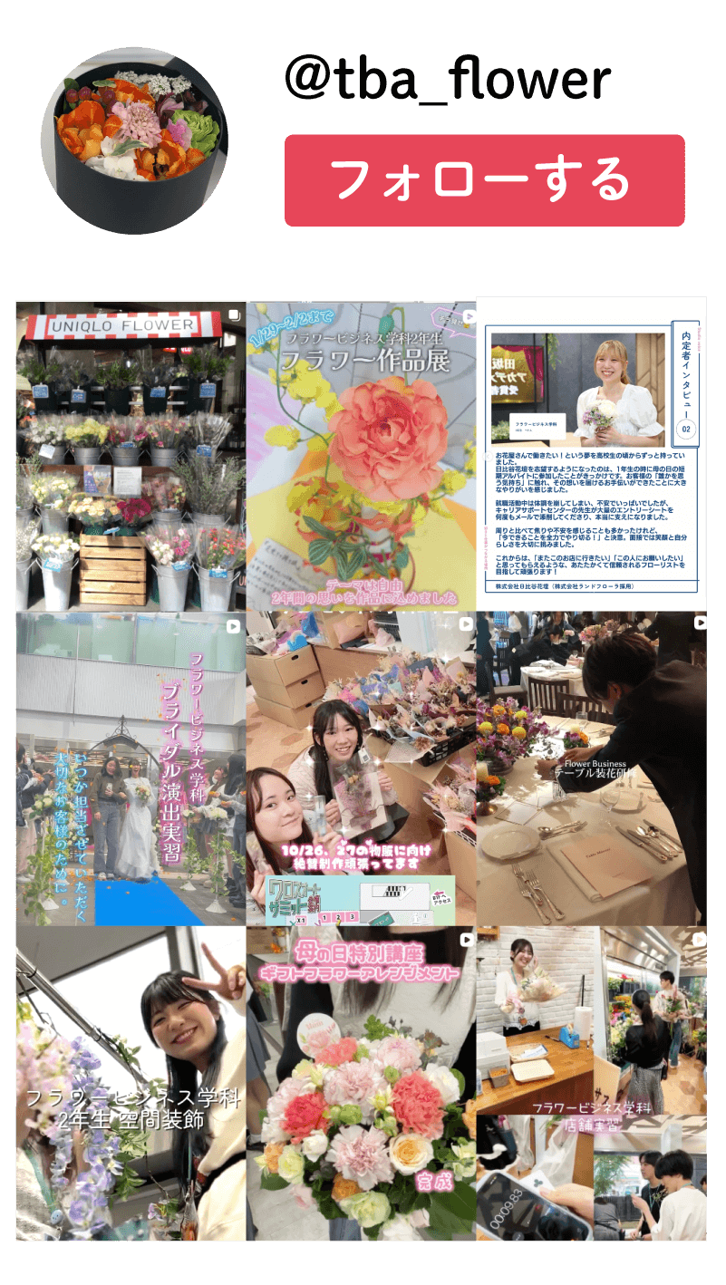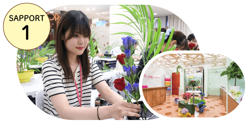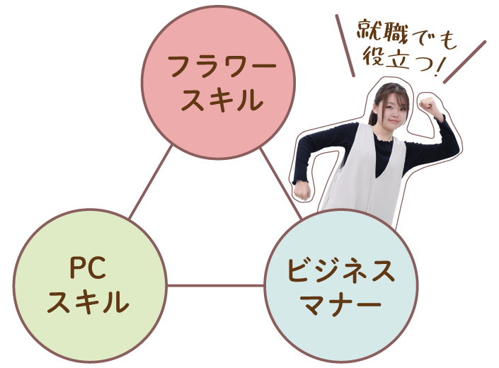フラワースキルだけでなく、ビジネスマナー・コミュニケーション・パソコン・ビジネス文書などの「ビジネススキル」も資格取得を通して学びます。