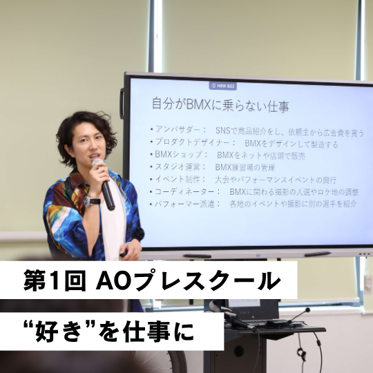 6月1日、総合型選抜(AO入学)エントリーをされた方だけが参加できる、入学前授業「AOプレスクール」の第1回が開催されました。記念すべき初回は、世界でも活躍するプロBMXライダー・池田貴広さんを講師に迎え、「夢→挑戦→実現」をテーマにした特別授業を実施。「夢を叶える」「夢を見つける」ためのスタートラ