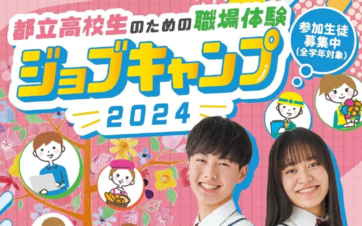 「都立高校生のための職場体験 ジョブキャンプ2024」は、東京都が高校生を対象に主催する職場体験プログラムです。限定25校の高校生約3,000人を対象に、実社会でさまざまな課題に直面した時に必要となる力を身につけるため、中小企業や学校などの受け入れ先で職場体験を実施することで、社会的実践力を持つ次代