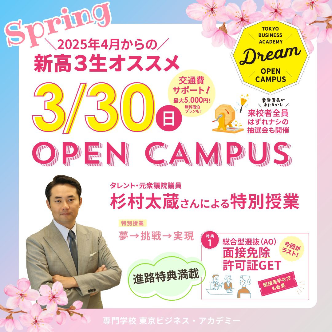 2025/01/31プレスリリース「夢を現実に!」3月30日 杉村太蔵さん特別授業付きスペシャルドリームオープンキャンパス開催!