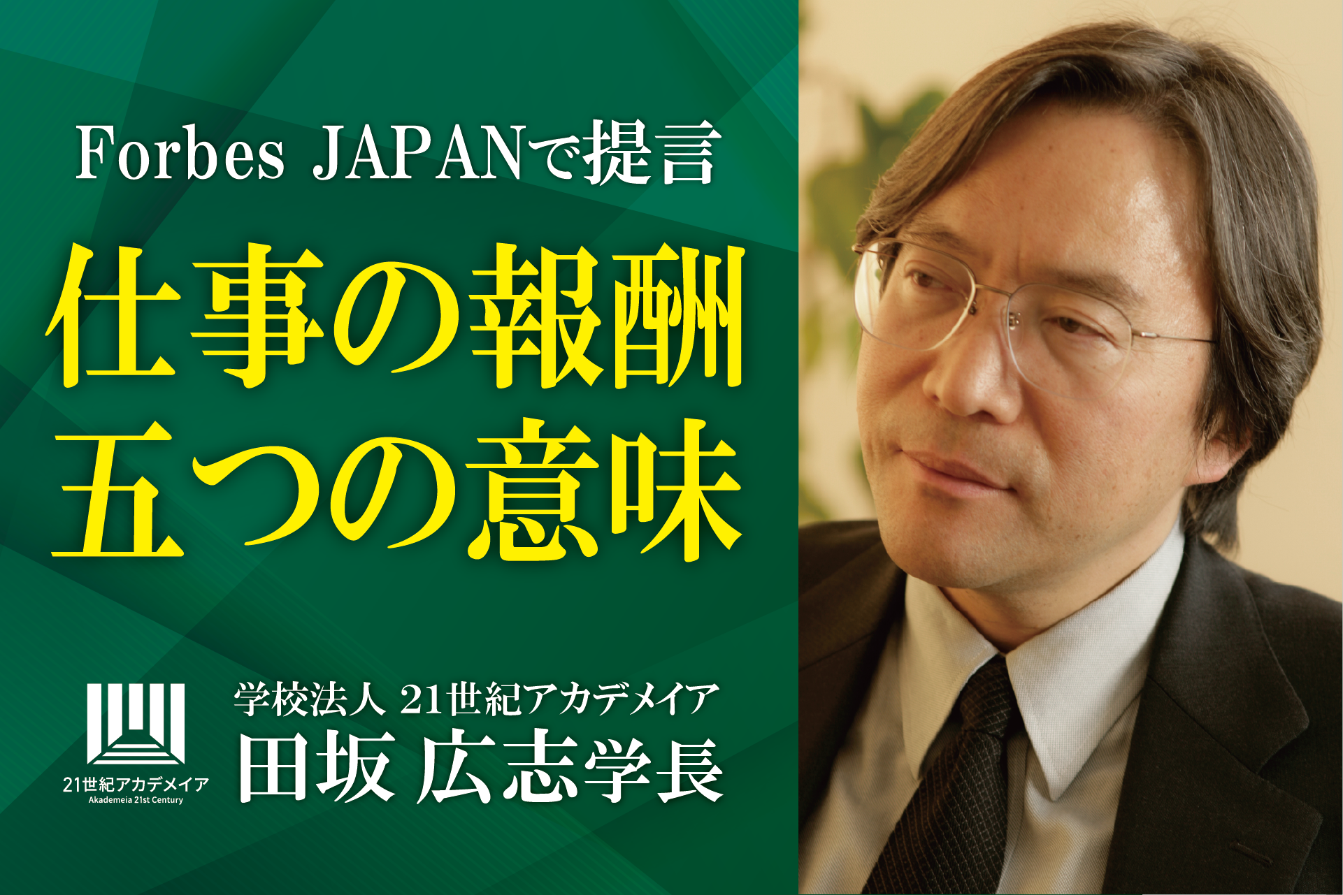 2025/06/27プレスリリース田坂広志学長が語る「仕事の報酬とは何か」。あなたは、この「目に見えない三つの報酬」を手にしているか。部下や社員に贈っているか。経済誌「Forbes Japan」に寄稿