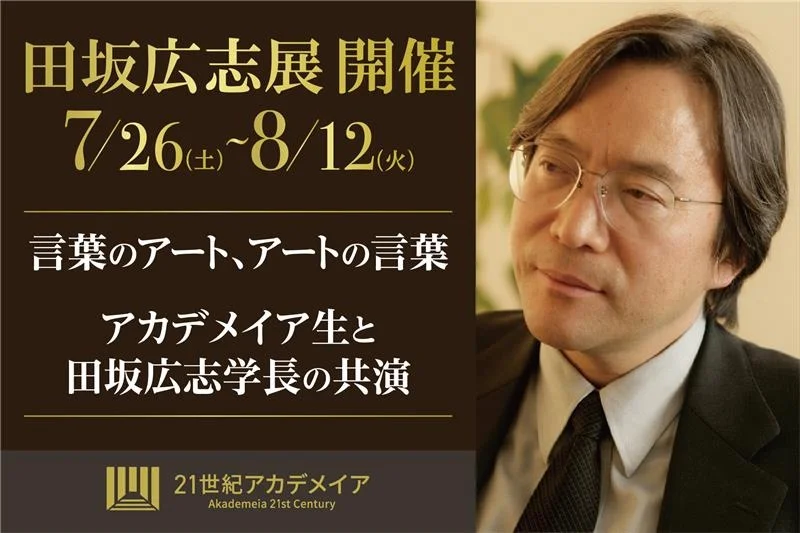 2025/07/15プレスリリース『田坂広志展』を7月26日より原宿で開催。田坂学長が新時代の教育理念を語る「言葉×アート」の展示会。注目は、学生のアート作品に田坂学長が散文詩で応える「返歌メッセージ」