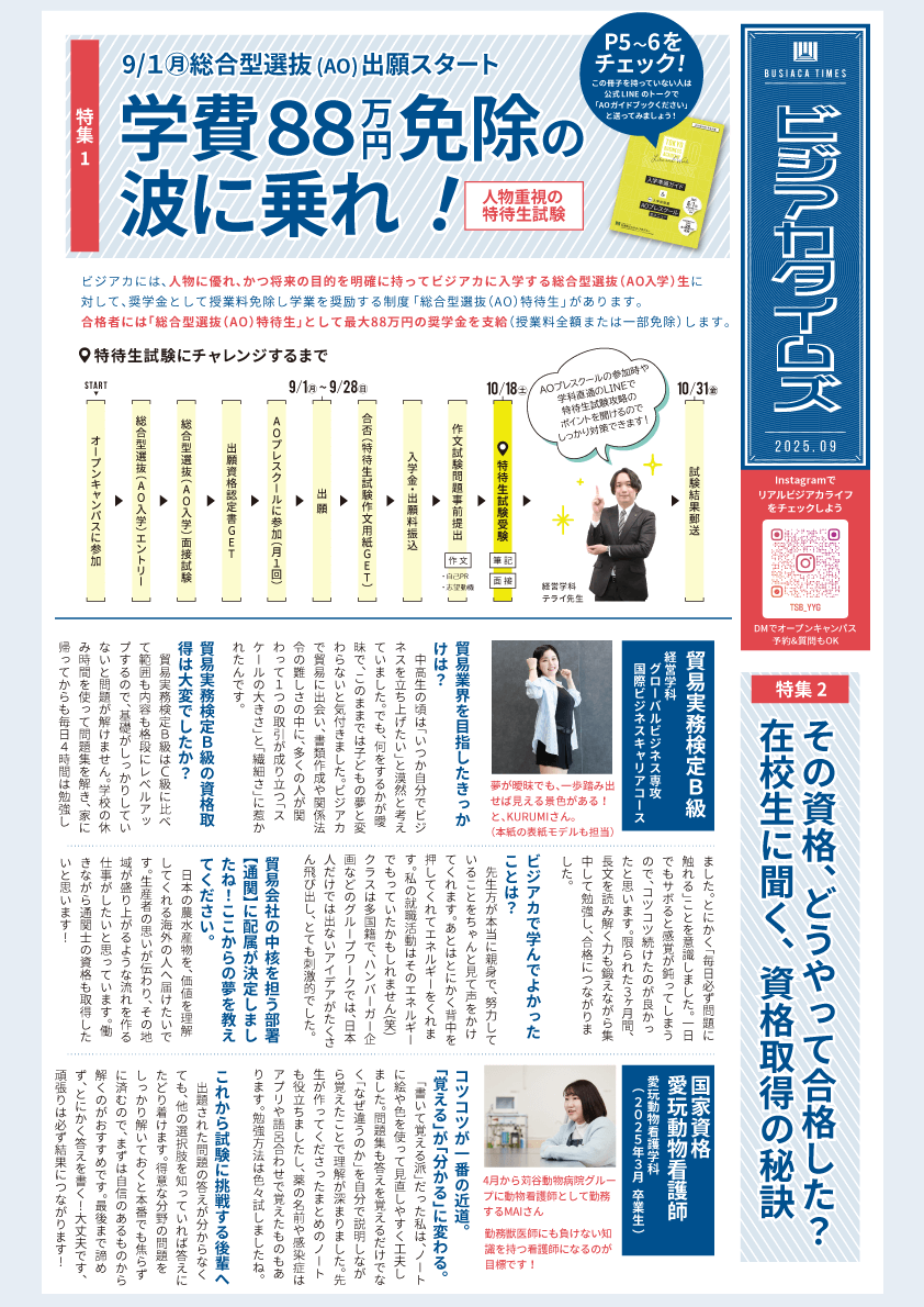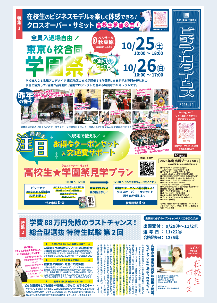 毎月発行されるオープンキャンパスのお知らせに掲載されている、ビジアカのオリジナル情報ページです。