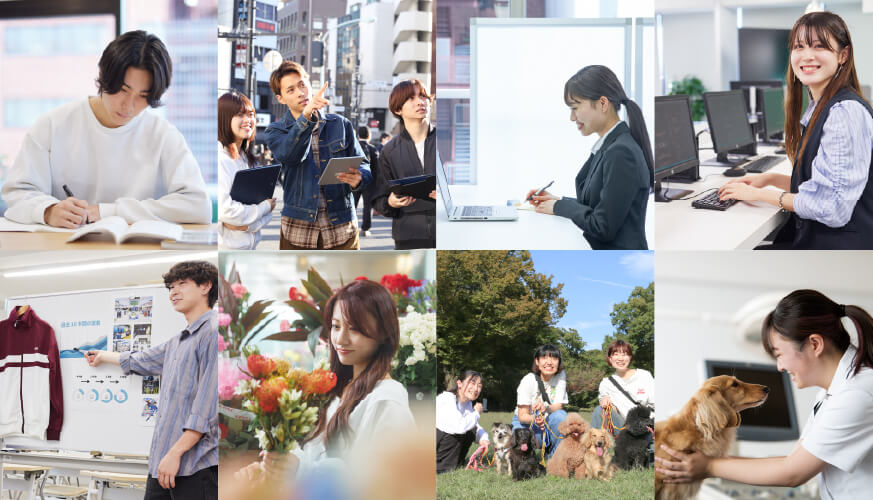 本校では、ビジネスにおけるさまざまな場面で即戦力となるように、より実践に近いカリキュラムと環境を整えています。理論や技術を覚えるのはもちろん、学生同士、あるいは教職員と協力しながら、仕事に対する姿勢を養うことを目的とし、就職活動に強く、卒業後に即戦力として活躍できるプロフェッショナルを育てます。