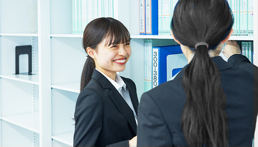 本校では、クラス担任とキャリアサポートセンター(就職活動専門教員)、さらに企業や卒業生とともに連携体制を築き、学生一人ひとりに対するきめ細やかな就職サポートを行っています。徹底サポートで希望する就職へと導く。